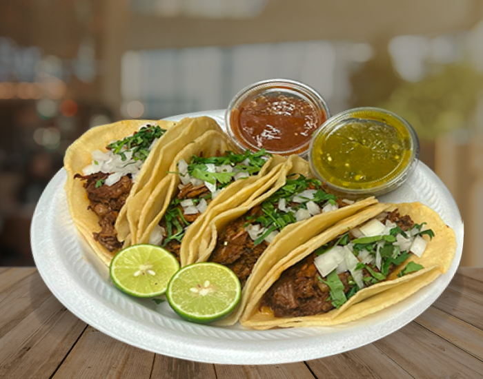 SERVED WITH BEANS, LETTUCE, TOMATO, AVOCADO AND YOUR CHOICE OF MEAT.